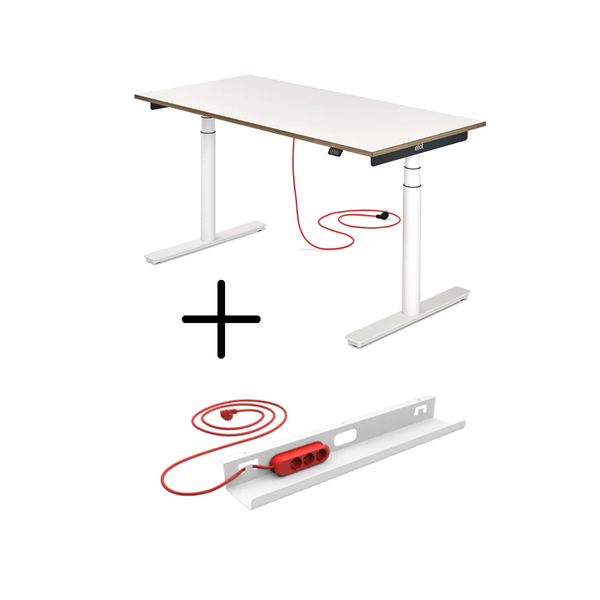 1cable ist mehr als nur eine Kabelwanne: eine durchdachte Lösung für praktische Verkabelung und smarte Elektrifizierung auf und unter dem Schreibtisch. Das ikonische, rote Kabel ist ein beliebtes Erkennungsmerkmal unserer Eliot Schreibtische.