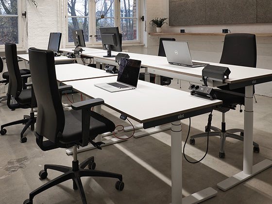 Unsere höhenverstellbaren Eliot Schreibtische sind die ideale Lösung für moderne Büros und Homeoffice-Arbeitsplätze.