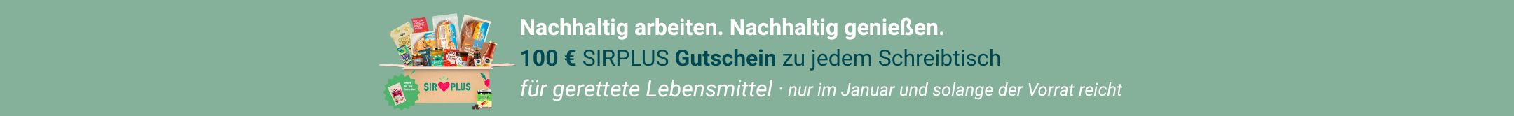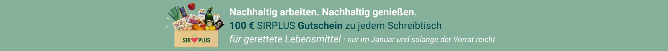 Im Januar 2026* gibt es zu jedem verkauften Eliot Schreibtisch einen Einkaufsgutschein im Wert von 100€ für den Sirplus Shop