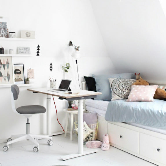 Warum ein Möbelstück nur für eine kurze Zeit kaufen, wenn es dich – und dein Kind – über viele Jahre begleiten kann? Mit Eliot wird der Wickeltisch zum Anfang einer langen Geschichte. Denn unsere höhenverstellbaren Schreibtische wachsen mit – vom Babyalter bis ins Erwachsenenleben.
